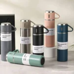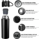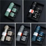 Made of food-grade stainless steel, the Stainless Steel Vacuum Flask Set, 500ml with 3 cups is durable and easy to clean. it can be used for a long time.