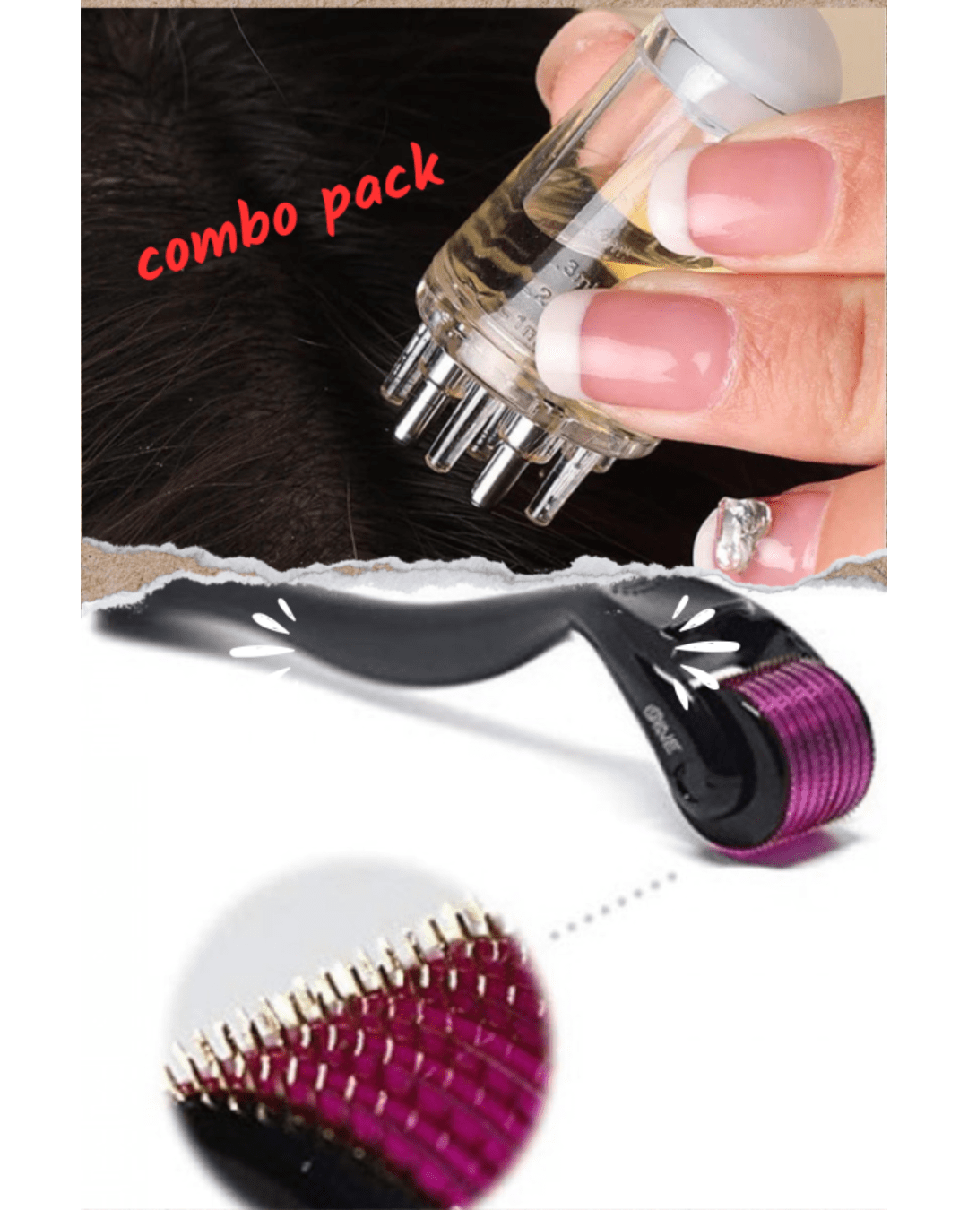 🪻 Combo Pack Scalp Root Hair Oil Applicator + Derma Roller (0.5mm) (Random Color)