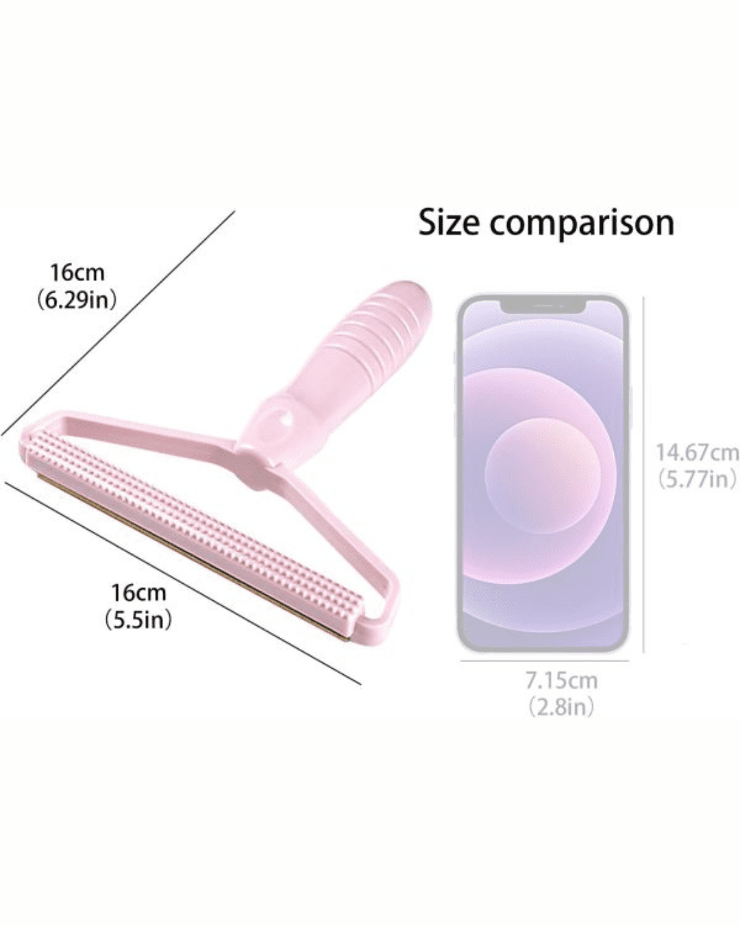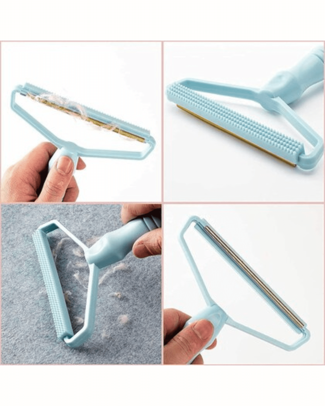 - This hair remover has a double-sided removing brush and a unique PP handle design.